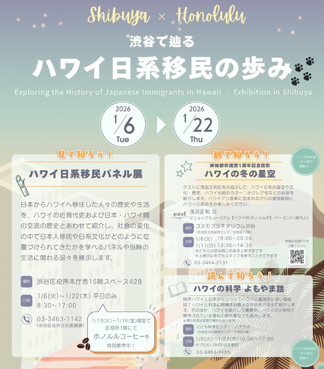 2026年1月6日より、渋谷区役所本庁舎15階スペース428でハワイ日系移民... -